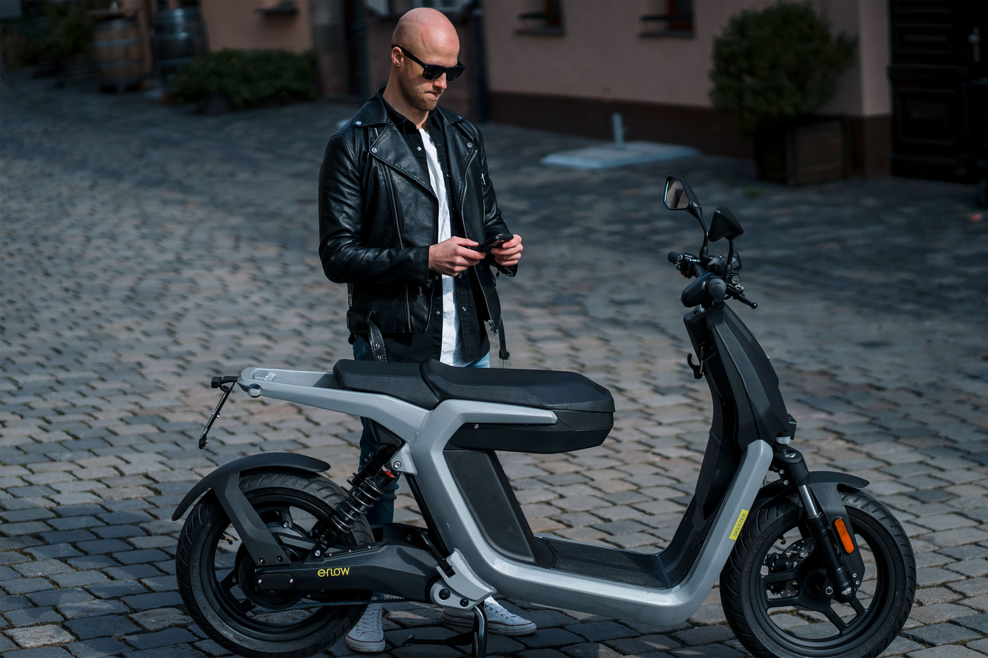 The eFlow Skeeter is a modern, dynamic e-scooter designed for urban sharing, featuring a robust hydroformed frame, up to 85 km range, and a top speed of 45 km/h.